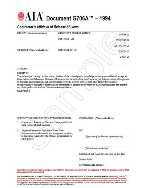 The parties may be all architects, all engineers, a combination of architects and engineers, dodument another combination of. Aia document g instructions related posts of aia g and g forms free and subcontractor application for payment template. Aia document g706 contractor's affidavit of payment of debts and claims project: Aia document ga— supports aia document g— in the event that the owner requires a sworn statement of the contractor stating that all releases or waivers of liens have been received. Unauthorized reproduction or distribution of this aia® document, or any portion of it, may result in severe civil and criminal penalties, and will be prosecuted to the maximum extent possible under the law.